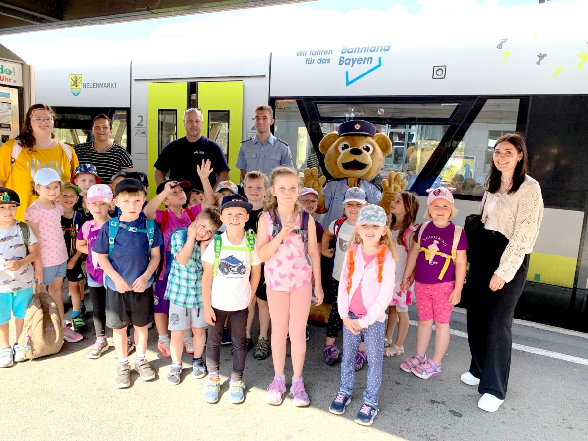 Kleine Polizisten am Bahnhof Weiden – Toni der Bär wartet schon