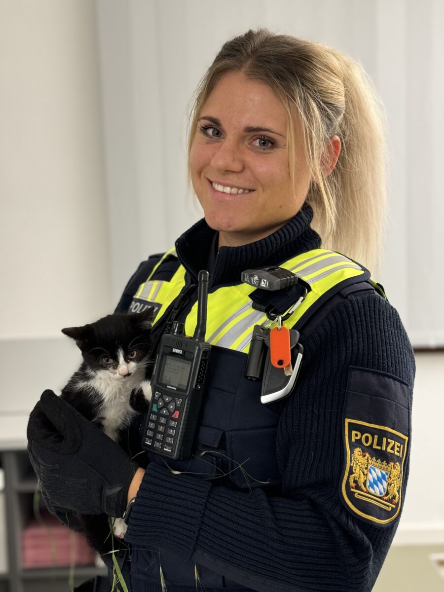 Die kleine Fundkatze ist circa vier bis sechs Wochen alt, hat überwiegend ein schwarzes Fell, einen schwarzen Punkt an der Nase und ist im Bauch- und Halsbereich weiß behaart. Sollte das Kätzchen bereits vermisst werden, bitte direkt mit dem Tierheim in Schwandorf in Verbindung setzten. Hinweise zum Besitzer bitte an die PI Nabburg.