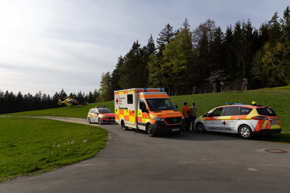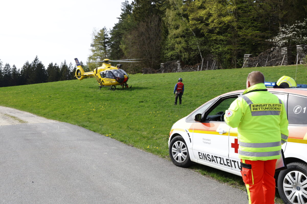 Er verletzte sich dabei sehr schwer am Kopf und im Rücken- und Beckenbereich. Sein Kamerad eilte ihm sofort zur Hilfe, konnte diesen jedoch nicht mehr alleine aus seiner misslichen Lage befreien. Vielmehr musste er ihn absichern, da dieser noch weiter nach unten zu stürzen drohte. Es gelang dem Helfer, noch einen Notruf abzusetzen und zwei zufällig vorbeikommende Mountainbiker auf sich aufmerksam zu machen.