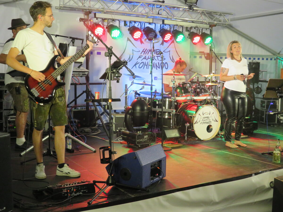 Am Freitag setze die Partyband „Himmelfahrtskommando“ aus Parkstein im vollen Festzelt den ersten Glanzpunkt. Franz Spörer (Drums), Dominik Schreffl (Bass), Felix Murr (Gitarre), Andreas Rom (Keyboard/Akkordeon) und Sängerin Marion Weißmeyer brachten das 300-Mann-Zelt in kürzester Zeit zum Kochen.