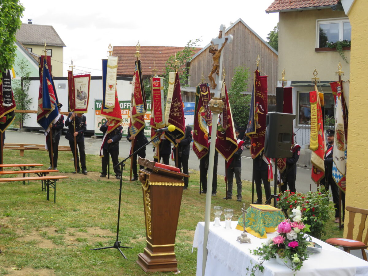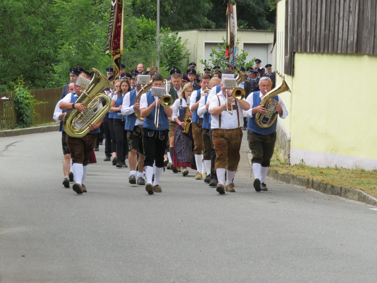 Die Böllerschützen von Eichenlaub Meerbodenreuth schossen Sonntag den Kirchenzug an. Die Feuerwehr Klobenreuth und 18 Fahnenabordnungen von Feuerwehren und Vereinen aus dem Landkreis, die Gäste und die Vertreter der Gemeinde und Vereine zogen zum Platz vor der Kapelle.