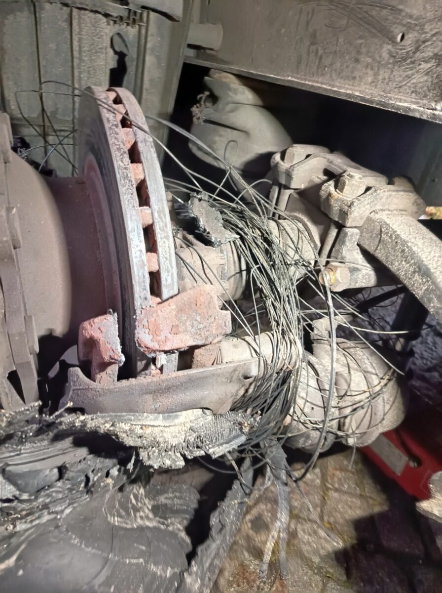 Am 17. November, gegen 7.45 Uhr, führte die Schwerverkehrskontrollgruppe der VPI Regensburg im Rahmen der Kontrollaktion „Truck and Bus“ eine Kontrollstelle auf der Autobahn A3 in Richtung Passau durch. Bereits im Vorfeld der Kontrolle wurde von den anfahrenden Einsatzkräften ein Lastwagen mit einem Reifenschaden am Auflieger auf dem Pannenstreifen entdeckt. Wie sich herausstellte, war aufgrund eines technischen Defekts das Radlager am rechten Rad der letzten Achse heiß gelaufen. Durch die hohe Temperatur wurde das Rad, einschließlich Bremse und Luftfederung, vollständig zerstört.