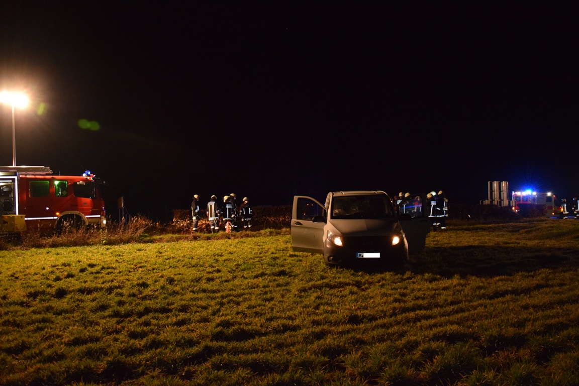 Glücklicherweise ist es dabei zu keinem Zusammenstoß mit anderen dort möglicherweise fahrenden Fahrzeugen gekommen. Der Wagen ist weiter durch den Straßengraben gefahren, hat eine Hecke “nieder gemäht” und ist über den Flurweg gerollt, ehe es an einer Wiese stehen geblieben ist. Der Fahrer soll sich nach erster Einschätzung nicht verletzt haben, was wohl nicht zuletzt den Sicherheitseinrichtungen des Fahrzeugs zu verdanken ist.
