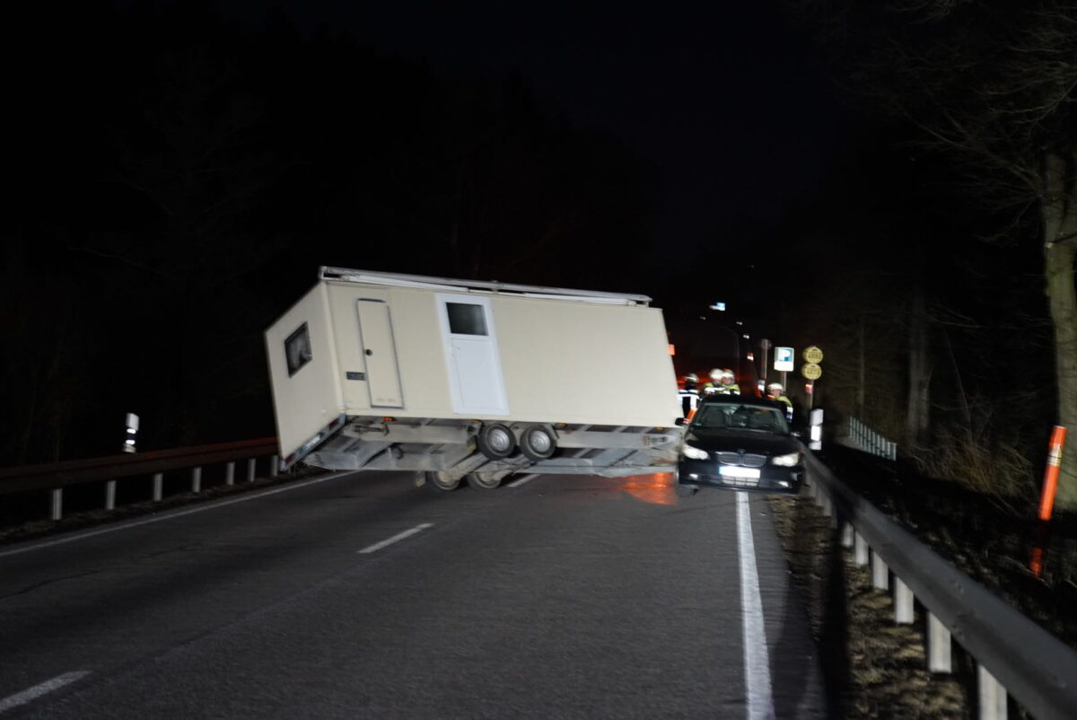 Am späten Sonntagabend, den 9. März 2025, kam es auf der B22 bei Tännesberg im Landkreis Neustadt zu einem Verkehrsunfall. Ein Fahrzeug mit einem Wohnwagenanhänger geriet ins Schleudern und sorgte für erhebliche Verkehrsbehinderungen. Der Wohnwagen prallte gegen die linke Leitplanke und verkeilte sich dort. In der Folge stand der Anhänger quer auf der Fahrbahn und drohte zu kippen.