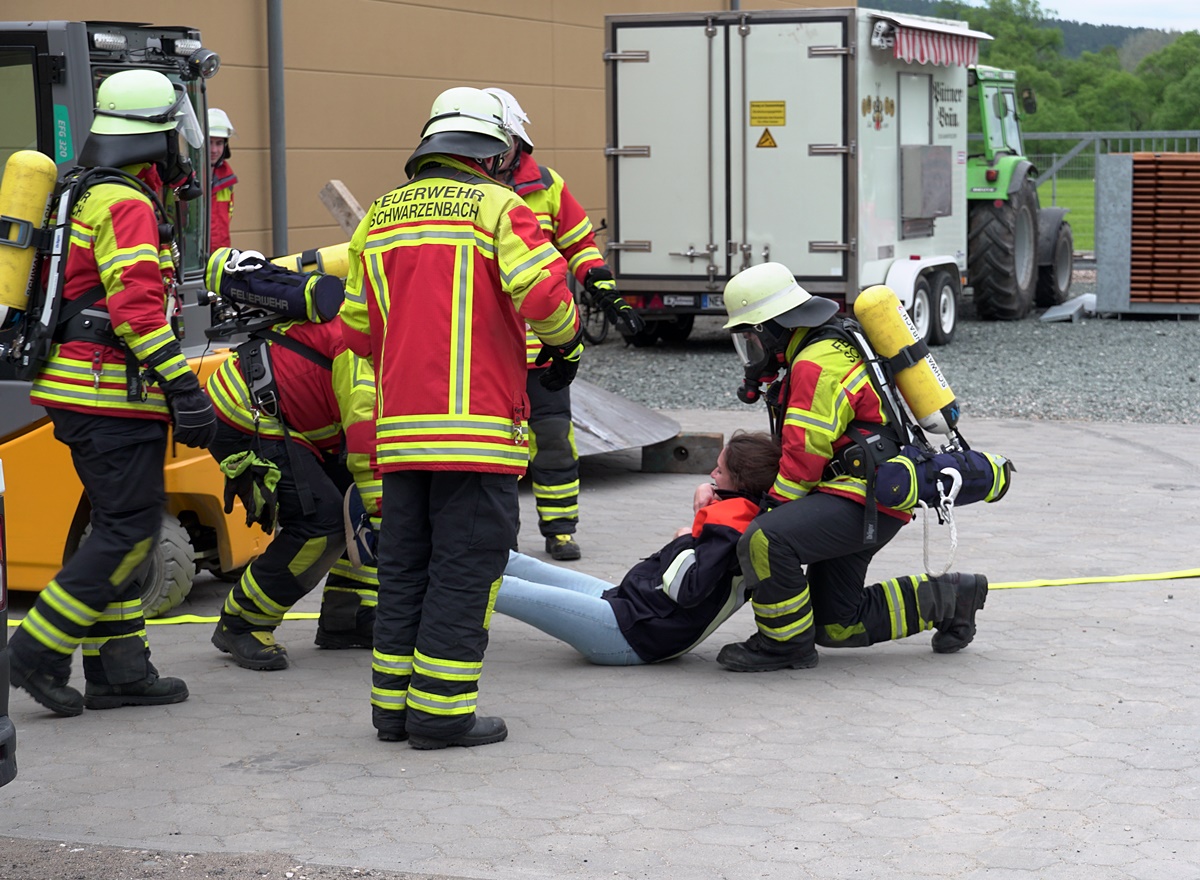 Unter anderem baute die Feuerwehr Gmünd zusammen mit der Feuerwehr Troschelhammer und der Feuerwehr Pressath eine etwa 300 Meter lange Schlauchleitung auf, unterstützen die Feuerwehr Schwarzenbach bei der Inbetriebnahme eines Lüfters zur Ventilation des Übungsobjektes. Zudem bereitete ein Atemschutztrupp gemeinsam mit der Feuerwehr Hütten einen Außenangriff vom Innenhof des Anwesens aus, sowie ein weiterer die Löschwassereinspeisung des HLF 20 aus Grafenwöhr mithilfe einer Schlauchkomponente vor.