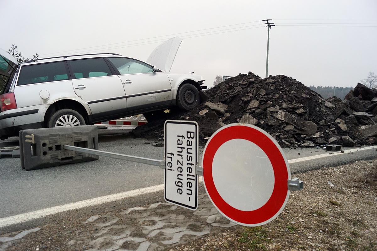 Mit dem Auto durch die Baustellenabsicherung gekracht