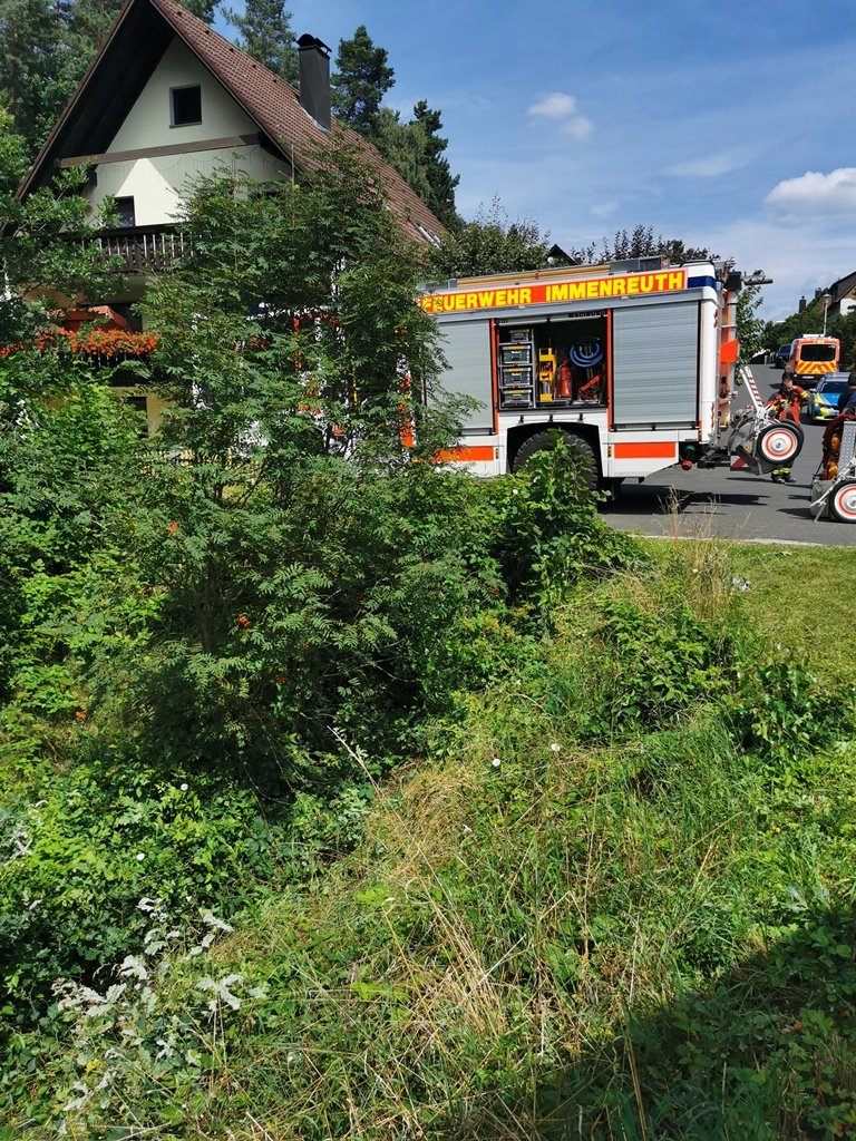 Anwohner hatten, so den ersten Informationen nach, Geräusche wahrgenommen und dadurch den Motorradfahrer und seine Maschine in der Böschung bemerkt, die von der Straße aus aufgrund des Bewuchses nur schwer einsehbar ist. Gegen 12 Uhr wurden die Rettungskräfte zum Motorradunfall in den Immenreuther Drosselweg alarmiert. Einsatzkräfte der Feuerwehr Immenreuth, die zuerst am Unglücksort eintrafen, kümmerten sich um die medizinische Erstversorgung des Patienten bis zum Eintreffen des Rettungsdienstes.