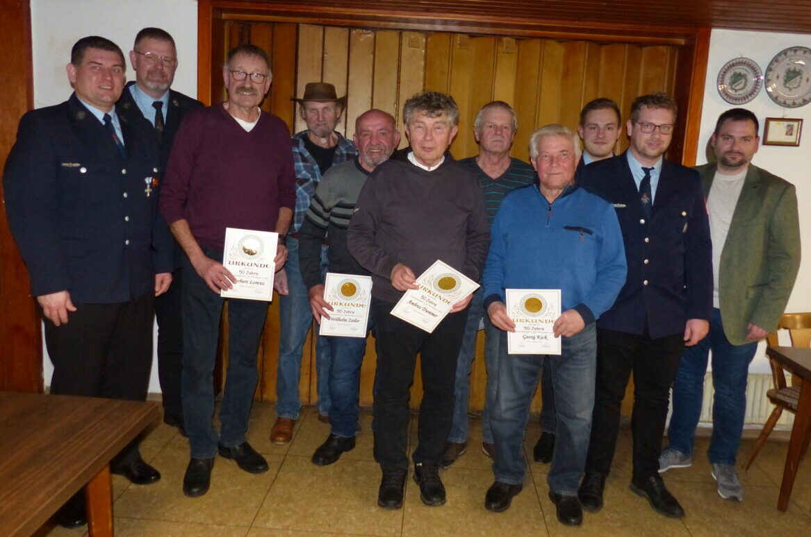 50 Jahre: Pfarrer a.D. Ambros Trummer, Michael Appl, Hans Dirnberger, Georg Gräf, Georg Kick, Herbert Lorenz, Werner Zeiler, Willi Zeiler