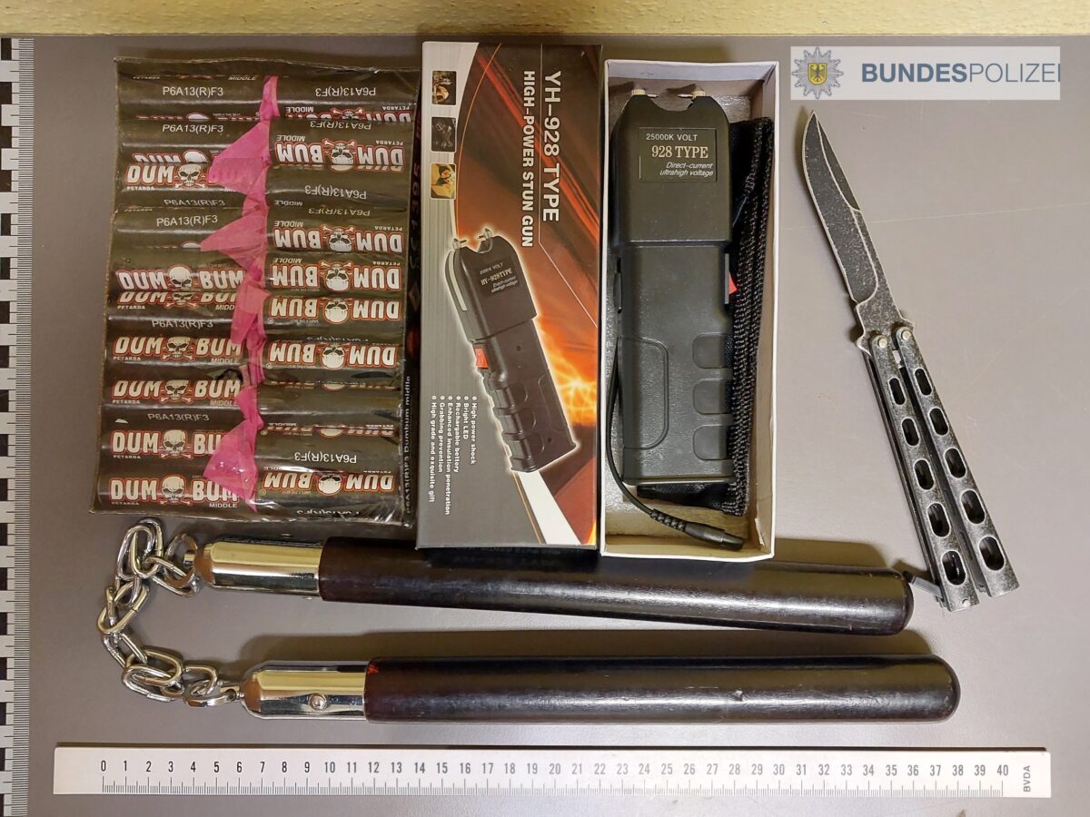 Die Bundespolizisten beschlagnahmten die verbotenen Gegenstände und zeigten den ehemaligen Besitzer wegen Verstößen gegen das Waffen- und Sprengstoffgesetz an.