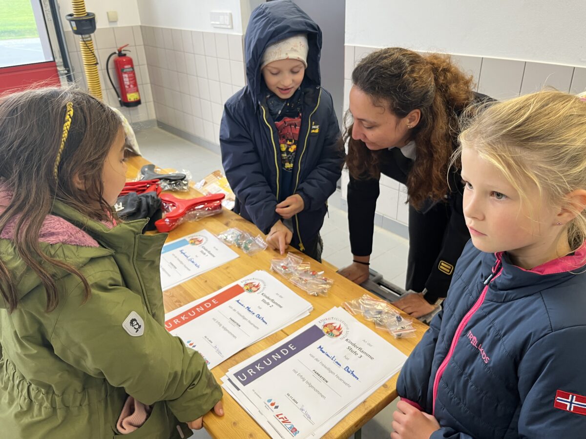 Dass es um diese, dank der guten Arbeit der Kinderfeuerwehren aktuell gut bestellt ist, zeigten die Kinder bei der anschließenden Abnahme eindrucksvoll. Vor den Augen einiger stolzer Eltern und durch ihre Betreuer hervorragend vorbereitet, stellten sie sich den verschiedenen Aufgaben für ihre jeweilige Abnahmestufe. Die Kinderflamme wird altersabhängig in der Stufe 1 (6-7 Jahre), Stufe 2 (8-9 Jahre) und Stufe 3 (10-11 Jahre) abgelegt. Dabei haben die Prüfungsaufgaben für die Kinder einen engen Bezug zum Feuerwehrgeschehen.