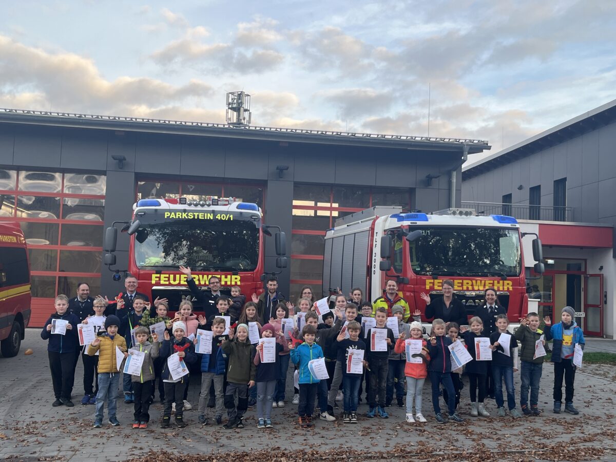 Viel Spaß und großartige Leistungen gab es am 2. November in Parkstein zu sehen. Dort führte die Kinderfeuerwehr zum 3. Mal die Abnahme der Kinderflamme durch. Insgesamt nahmen 32 Kinder an der Abnahme teil. Über diesen großen Zuspruch freuten sich auch Bürgermeister Reinhard Sollfrank, der Vereinsvorsitzende Hans Wittmann, der Kommandant Stefan Bäumler, sowie Kreisbrandmeisterin Mirjam Schuller, welche im Landkreis Neustadt für die Kinder- und Jungendfeuerwehren zuständig ist. Sie alle dankten den Verantwortlichen für ihre wichtige und wertvolle Arbeit und hoben in ihren Grußworten die Bedeutung der Nachwuchsarbeit für die Zukunft der Feuerwehren hervor.