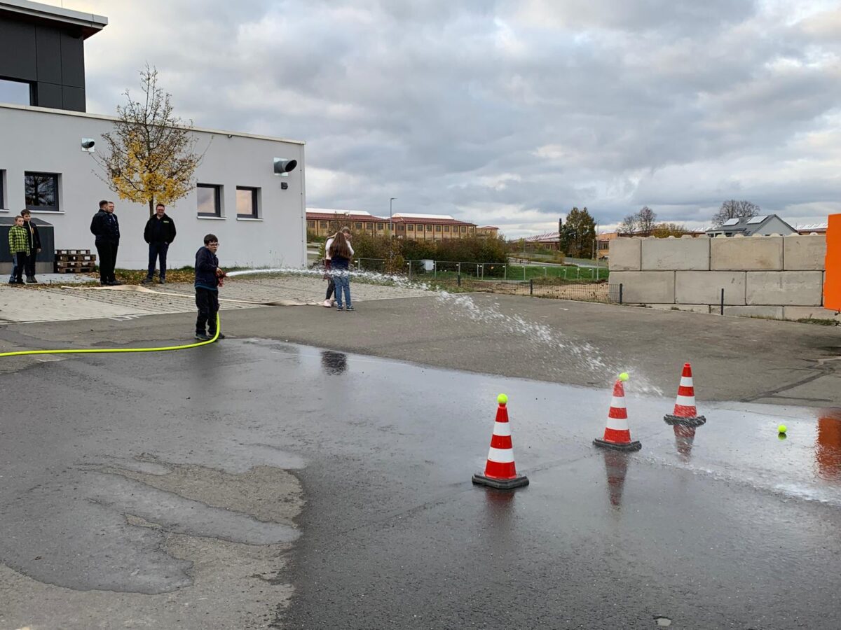 So galt es neben Aufgaben zum Thema „Erste Hilfe“ und „Notruf“ auch Aufgaben aus dem Bereich der Brandschutzerziehung zu absolvieren. Außerdem mussten die Bestandteile der Schutzausrüstung im Feuerwehreinsatz sowie die Aufgaben der Feuerwehren genannt werden. Auch verschiedene Geschicklichkeitsaufgaben galt es zu bewältigen. Die Kinder zwischen 10 und 11 Jahren, die kurz vor dem Übertritt in die Jugendfeuerwehren stehen, näherten sich dem Thema Feuerwehr dann auch sehr praktisch, denn sie mussten unter anderem im Rahmen eines kleinen Löscheinsatzes mit D-Schläuchen Bälle von Pylonen spritzen.
