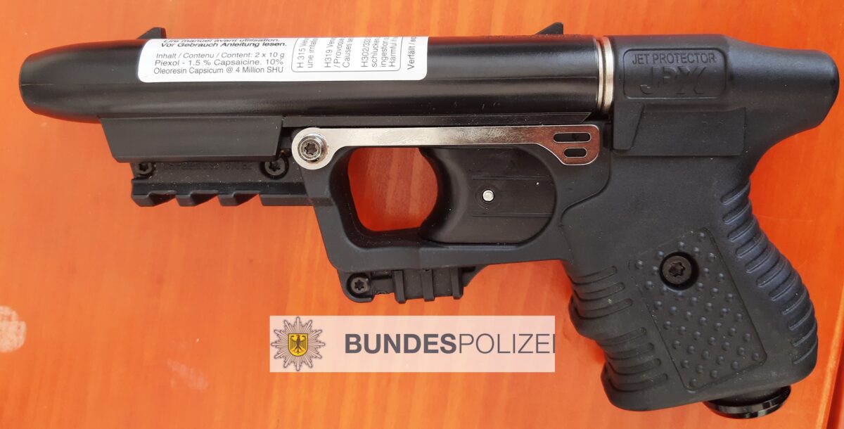 Die Frage, ob sie verbotene Waffen bei sich führen, verneinten die beiden Autoinsassen anfänglich. Doch die erfahrenen Grenzbeamten durchschauten die Waffenschmuggler und entdeckten eine Pfefferpistole im Handschuhfach und ein Springmesser in der Mittelkonsole des Fahrzeugs.