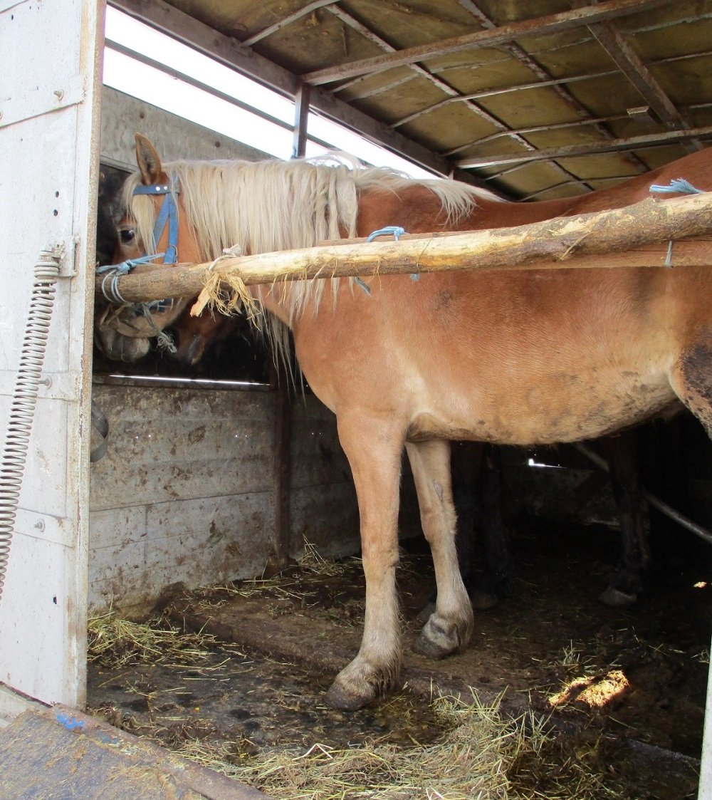 Bereits bei der ersten Inaugenscheinnahme der Fahrzeuge und Anhänger stellten die Zöllner fest, dass die insgesamt neun ausgewachsenen Pferde weder artgerecht gesichert noch versorgt waren.