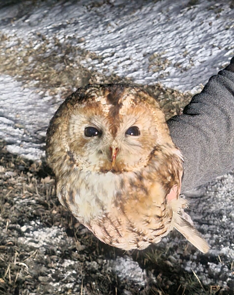 Das Tier saß auf der Staatsstraße 2175 bei Konnersreuth und war offensichtlich flugunfähig. Vermutlich hatte das Tier Verletzungen durch die Kollision mit einem Auto erlitten.