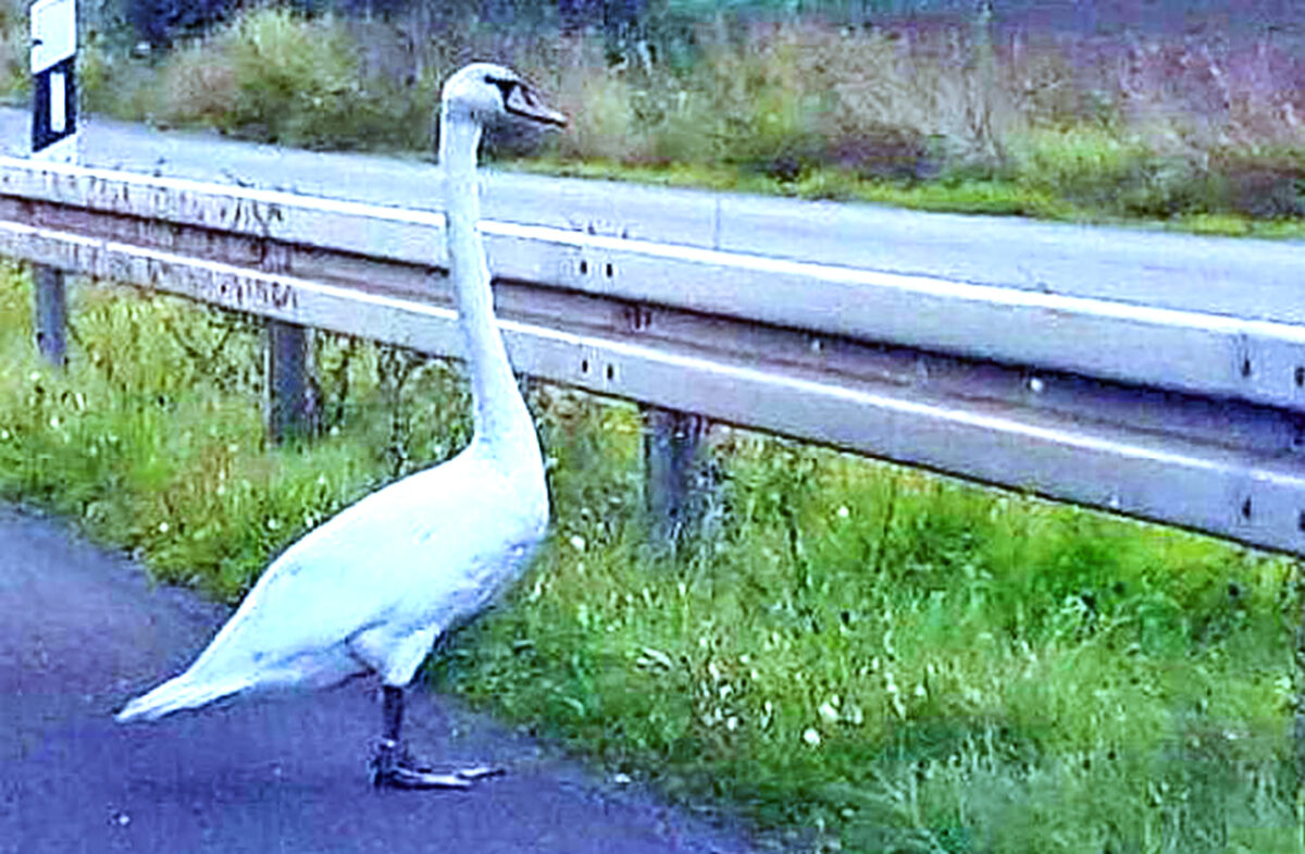Keine leichte Flucht für den weißen Wasservogel, der normalerweise eine nasse Startbahn auf einem Fluss oder See mit beträchtlicher Strecke bevorzugt. Geschwächten Schwänen gelingt der anstrengende Kaltstart an Land so gut wie nie. Indizien deuten deshalb darauf hin, dass sich das Tier bei seiner Autobahn-Promenade gut erholen konnte oder aber aufgrund der von ihm verursachten Aufregung von einem gewaltigen Adrenalin-Turbo in die Lüfte gehoben wurde.