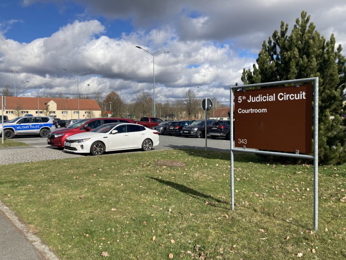 Montag, 8 Uhr, am Tor zu den Rose Barracks. Jason Treffry vom Office für Public Affairs nimmt die Reporter in Empfang. Zwei lokale Medien plus ein Journalist der “Stares and Stripes”. In Eskorte wird zum Gericht gefahren. Kameras, Laptops, Smartphones – alles bleibt im Auto. Erlaubt sind nur “pen and paper”.