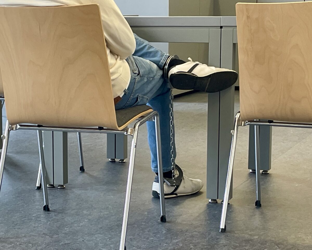 In Bauchgurt und Fußfesseln vorgeführt