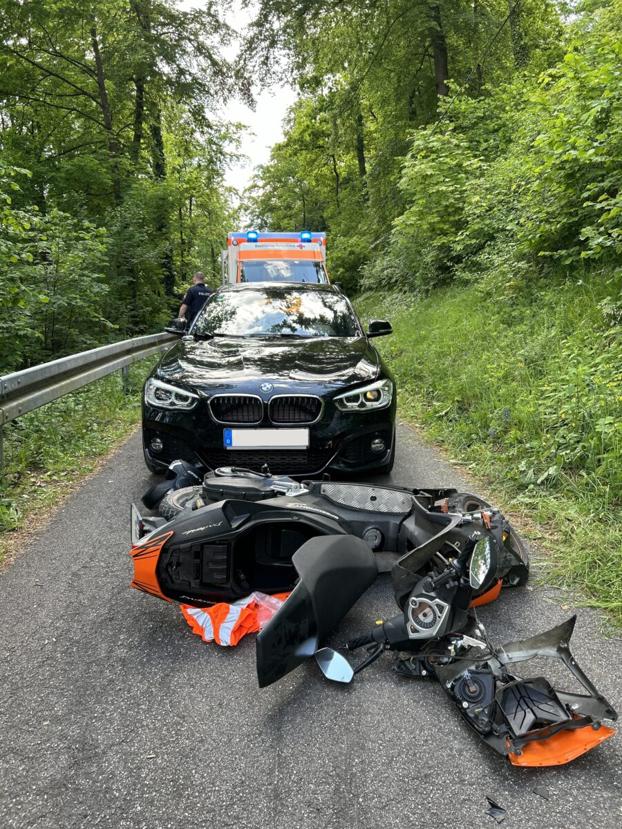 Dabei kollidierte der Heranwachsende mit einem entgegenkommenden Wagen eines 47-Jährigen aus dem Landkreis Regensburg. Der Rollerfahrer musste mit leichten Verletzungen in ein Krankenhaus eingeliefert werden, der Autofahrer blieb unverletzt blieb.