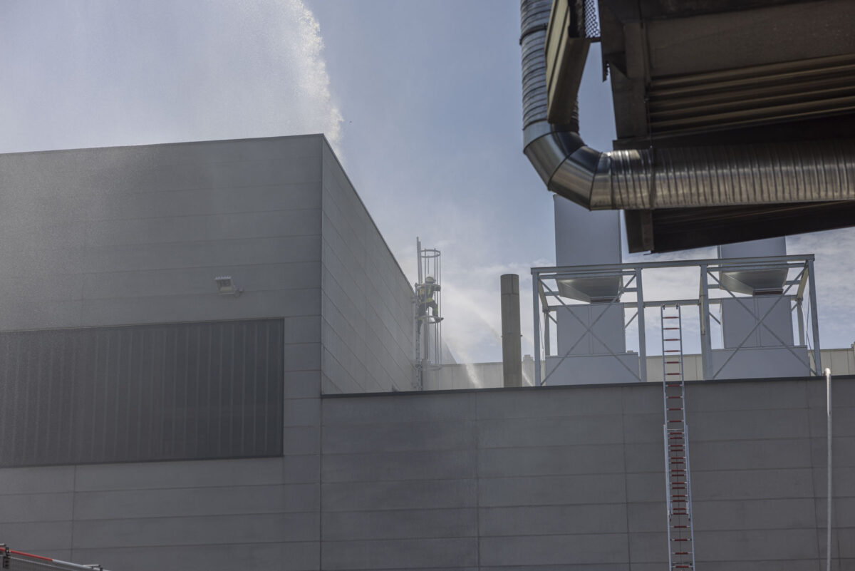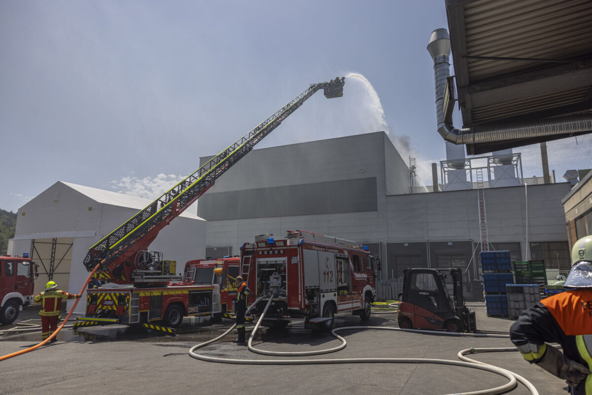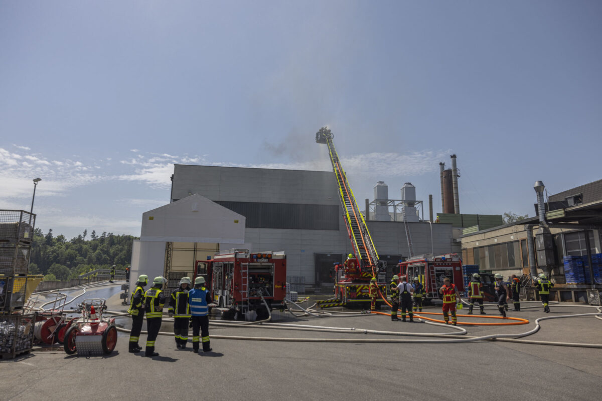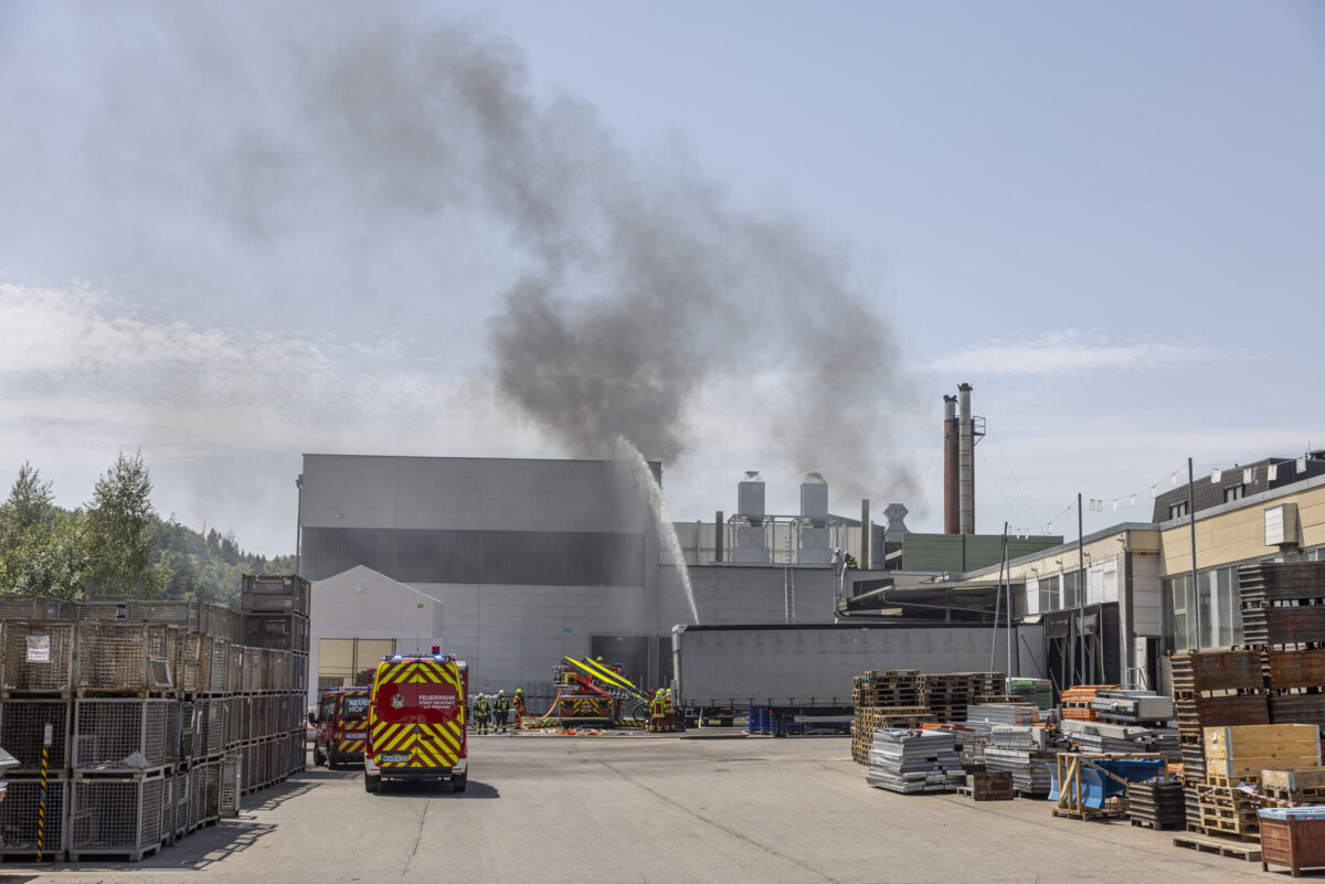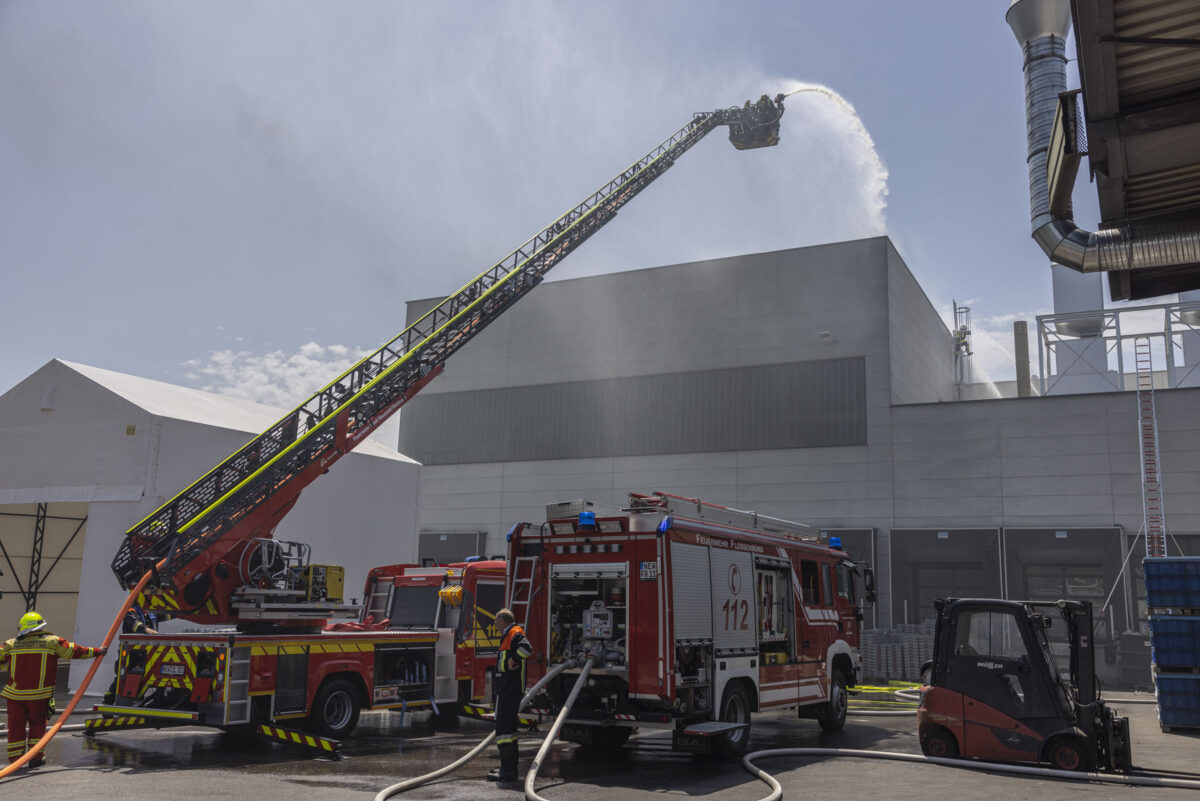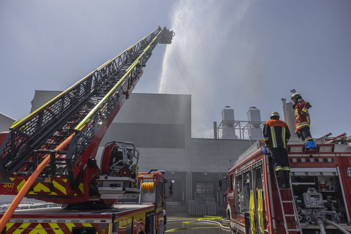 Aktuell seien etwa 150 Einsatzkräfte mit rund 30 Fahrzeugen vor Ort. „Das Dach eines Industriegebäudes hat Feuer gefangen“, sagt Kleber und kann Entwarnung geben. „Mittlerweile ist der Brand unter Kontrolle.“ Menschen seien glücklicherweise nicht zu Schaden gekommen. Die Brandursache müsse erst noch untersucht werden.