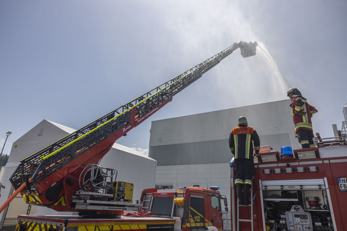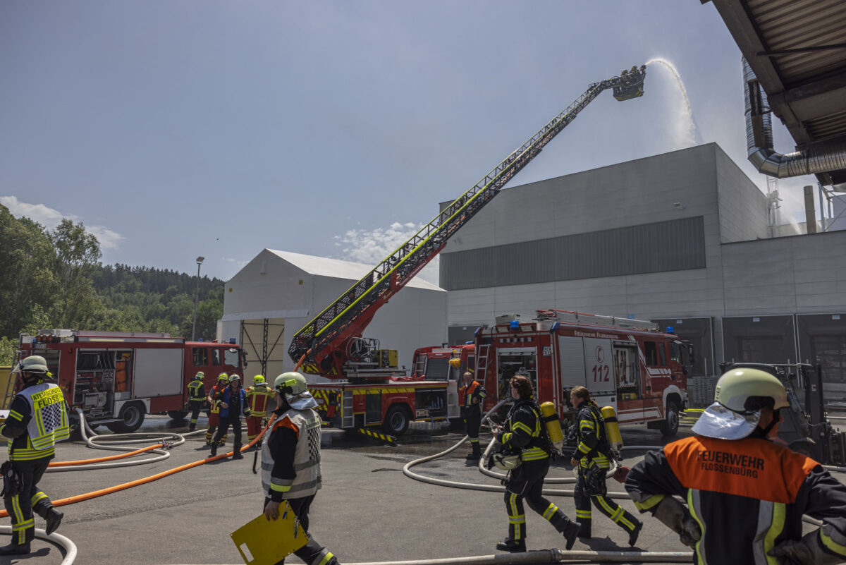 Alexander Kleber, Kreisbrandmeister für Sonderaufgaben und Öffentlichkeitsarbeit für die Kreisbrandinspektion Neustadt/WN, beschreibt die Lage für OberpfalzECHO: „Wir befinden uns heute in Flossenbürg bei einem B4, einem Brand-4-Industriegebäude.“
