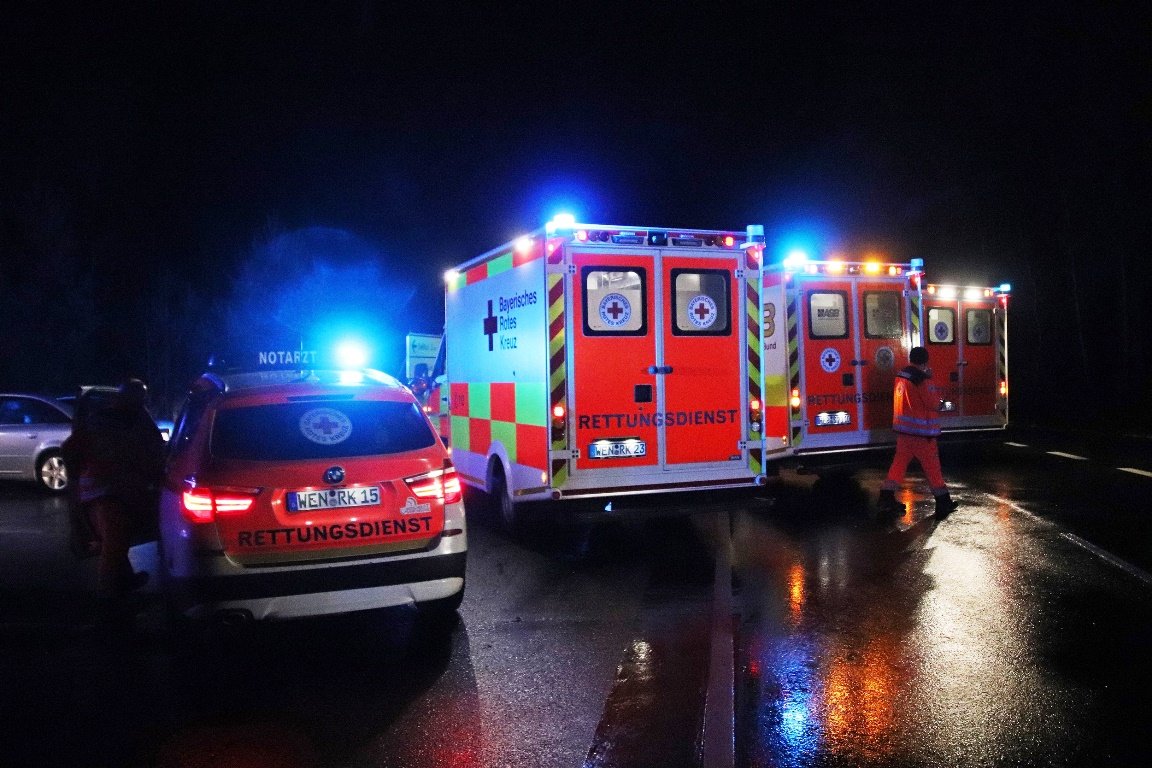 Vor Ort waren vier Rettungswägen und zwei diensthabende Notärzte. Zudem waren die Feuerwehren Schwarzenbach und Dießfurt mit 23 Einsatzkräften für Verkehrsmaßnahmen und zur Ausleuchtung der Unfallstelle vor Ort. Die Kreisstraßen waren über vier Stunden bis zur Beendigung der Unfallaufnahme komplett gesperrt.