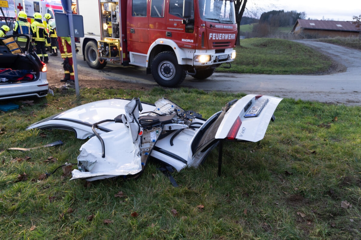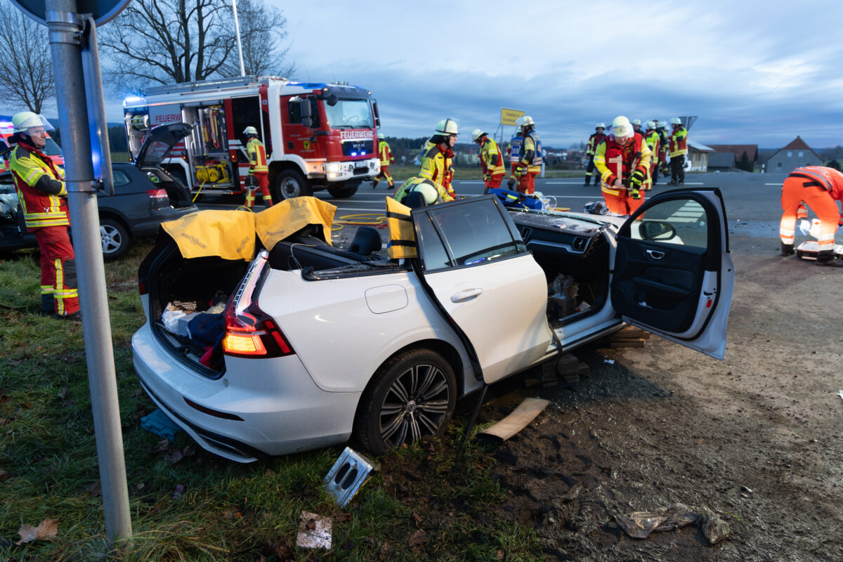 Ein 29-Jähriger fuhr mit seinem weißen Volvo von Burggrub in Richtung Staatsstraße 2181 und wollte auf diese abbiegen. Dabei übersah er einen vorfahrtsberechtigten 25-Jährigen in einem dunkelgrauen VW Passat. Der Passat befand sich auf der Staatsstraße 2181, unterwegs von Windischeschenbach in Richtung Erbendorf. Beim Einleiten des Abbiegevorgangs durch den Volvo-Fahrer kam es zur Kollision. Der VW Passat prallte frontal in die Fahrerseite des Volvo. Die 23-jährige Beifahrerin im Volvo und der Fahrer des Passat erlitten dabei mittelschwere Verletzungen. Sie wurden umgehend per Rettungswagen in nahegelegene Krankenhäuser gebracht. Der Volvo-Fahrer zog sich schwere Verletzungen zu. Er wurde durch die Feuerwehr aus dem Fahrzeug befreit, indem das Dach des Autos weggeschnitten werden musste. Anschließend war ein Transport per Rettungshubschrauber ins Krankenhaus erforderlich. “Glücklicherweise wurde niemand lebensbedrohlich verletzt”, ist zu vernehmen. Trotzdem entstand an beiden Autos wirtschaftlicher Totalschaden. Sie mussten abgeschleppt werden. Der Gesamtsachschaden beläuft sich auf etwa 50.000 Euro.