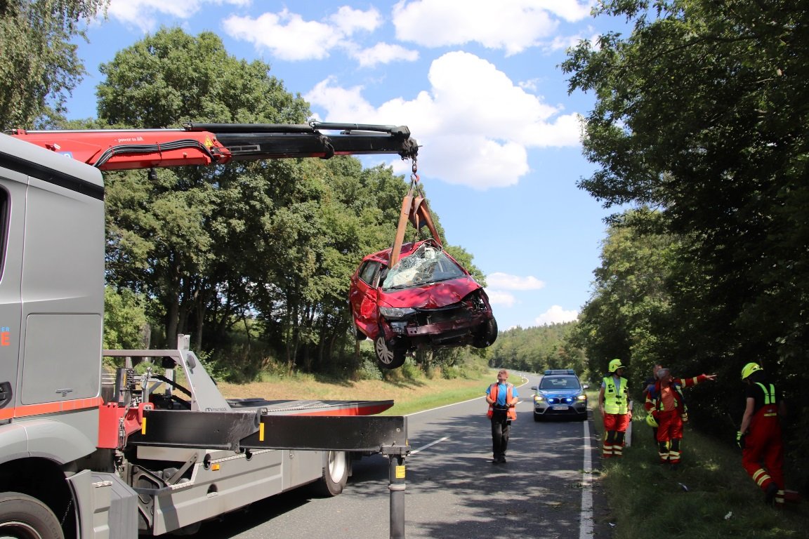 Der Honda hat einen Totalschaden und musste abgeschleppt werden. Die Staatstraße 2166 war knapp eineinhalb Stunden voll gesperrt. Dies und die Reinigung der Fahrbahn übernahmen die Feuerwehren aus Mantel und Neunkirchen bei Weiden.