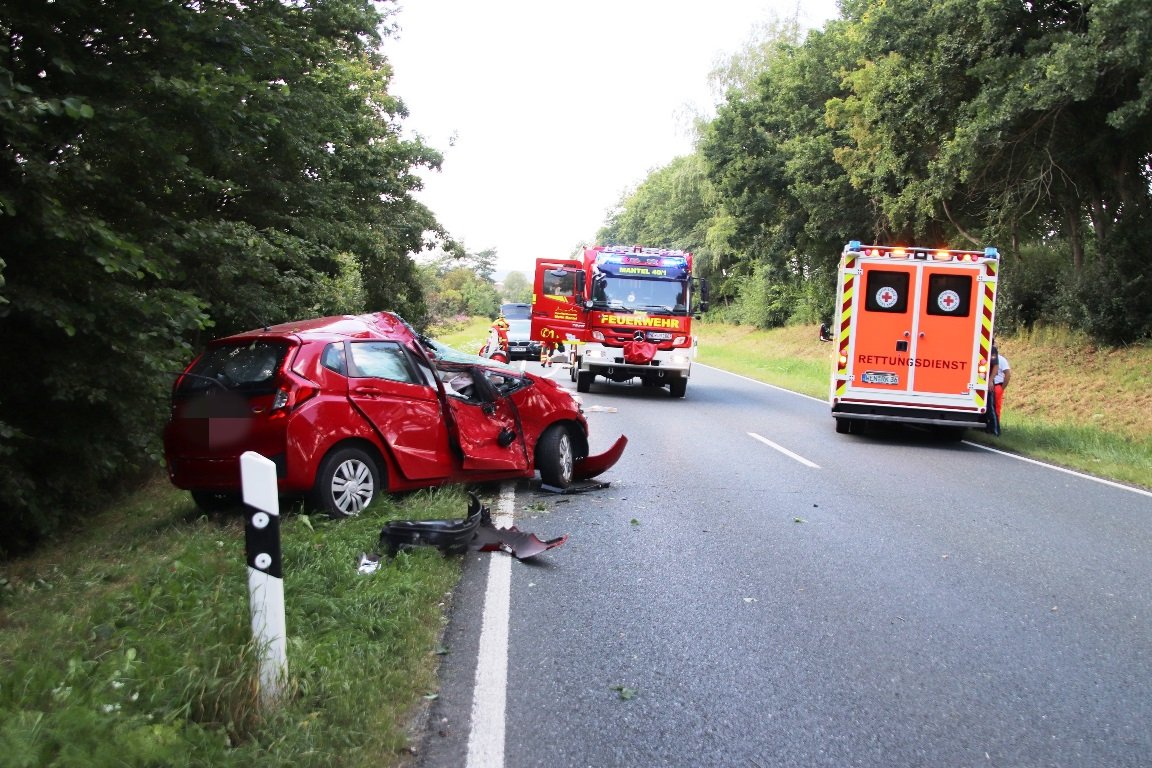 Eine Frau (46) aus dem Gemeindebereich Mantel befuhr die Staatsstraße von Weiden kommend, als sie auf Höhe Kellerhaus in einer leichten Rechtskurve nach links von der Fahrbahn abkam. Der Honda fuhr auf der Gegenfahrbahn in den Graben und krachte dort nach rund 50 Metern in mehrere kleine Bäume. An einem größeren spießte sich der Wagen und schleuderte wieder auf die Fahrbahn.