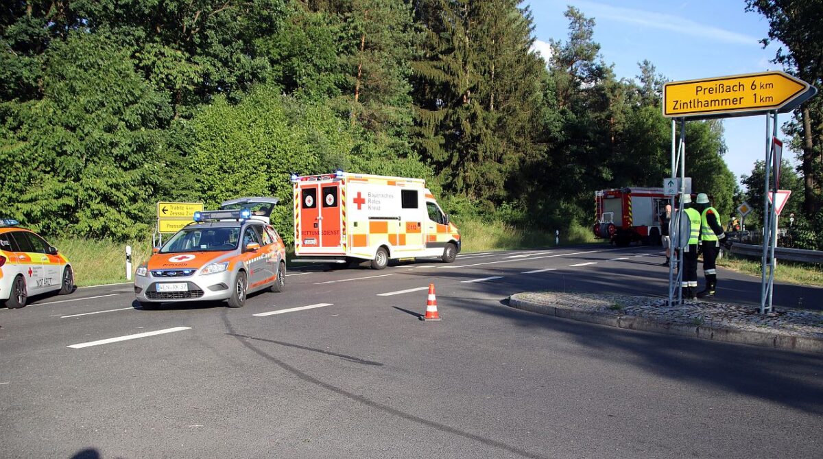 Die Kreisstraße war für mehrere Stunden voll gesperrt. Die Feuerwehren Zintlhammer und Pressath waren mit 25 Kräften im Einsatz, sowie der HvO Pressath, ein Notarztfahrzeug, ein Rettungswagen und ein Rettungshubschrauber.