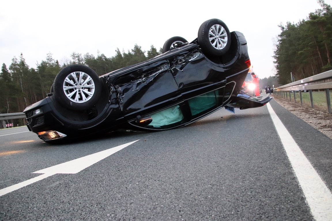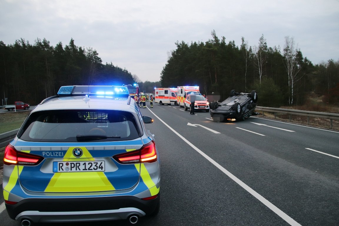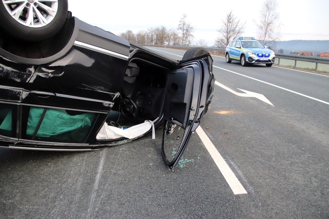 Dessen Fahrer, ein Mann (60) aus Weiden, versuchte noch auszuweichen, konnte einen Zusammenstoß aber nicht mehr verhindern. Dadurch kam der Tiguan ins Schleudern und überschlug sichund landete schließlich auf dem Dach.
