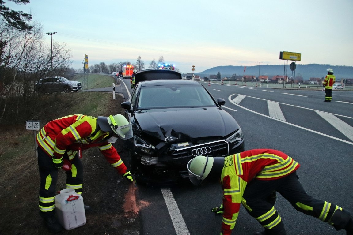Am Dienstagmorgen gegen 06:15 Uhr ereignete sich in der Auffahrt zur B470 bei Schwarzenbach ein Verkehrsunfall mit zwei Fahrzeugen. Eine junge Pressatherin (28) wollte von der NEW5 auf die Bundesstraße nach links in Richtung Weiden einbiegen und übersah dabei einen aus dieser Richtung kommenden VW Tiguan.