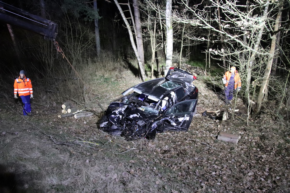 Ein Kran musste den Wagen aus dem Gebüsch ziehen. Foto: Jürgen Masching