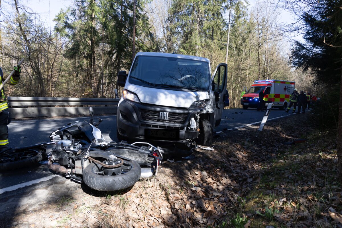 Ein 24-jähriger Tirschenreuther befuhr mit seinem BMW-Motorrad die Staatsstraße 2121 von Krummennaab kommend in Richtung Thumsenreuth. Im Bereich einer Rechtskurve kam er aus bislang nicht geklärter Ursache auf die Gegenfahrbahn. Eine 33-jährige Frau aus dem Bereich Wernberg-Köblitz befuhr zu diesem Zeitpunkt mit einem Fiat Kleintransporter die Gegenfahrbahn in Richtung Krummennaab. Sie konnte dem Kraftradfahrer nicht mehr ausweichen und stieß mit diesem frontal zusammen.