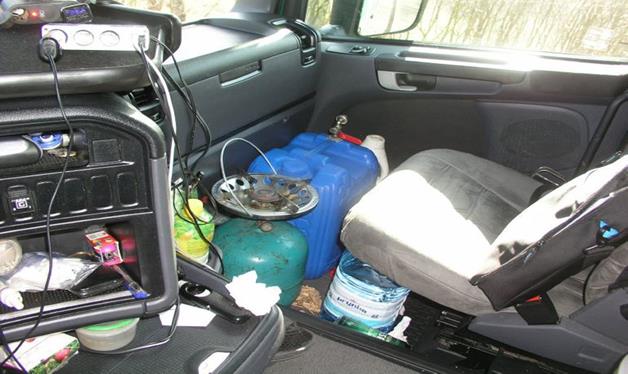 Ungesicherte Gasflasche im Führerhaus