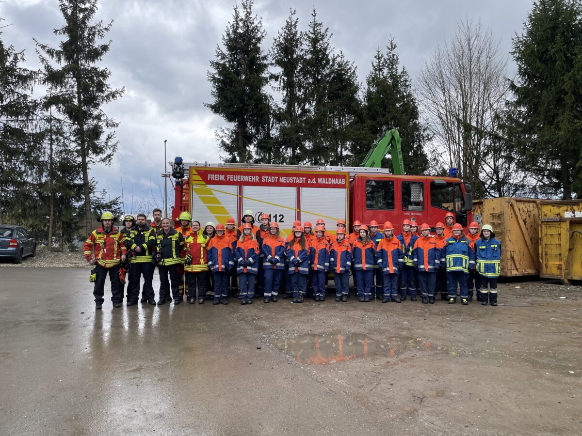 Elf Neustädter und 17 Störnsteiner Nachwuchskräfte im Alter zwischen zwölf und 18 Jahren erlebten für 24 Stunden hautnah den Dienstalltag von Berufsfeuerwehrleuten. Organisiert wurde dieser Tag wieder von den Jugendwartinnen Michaela Ertl (FF Neustadt/WN) und Tanja Schwamberger (FF Störnstein).