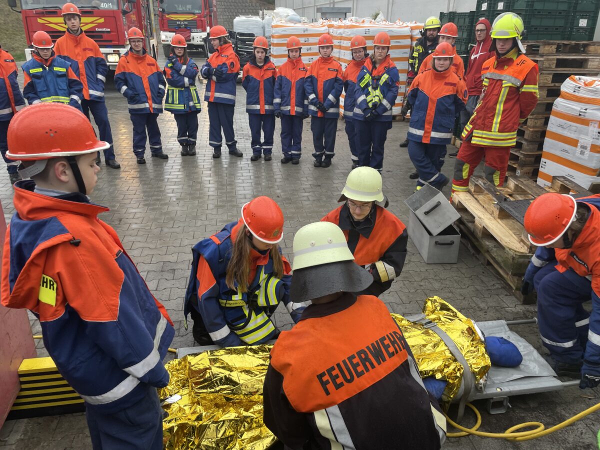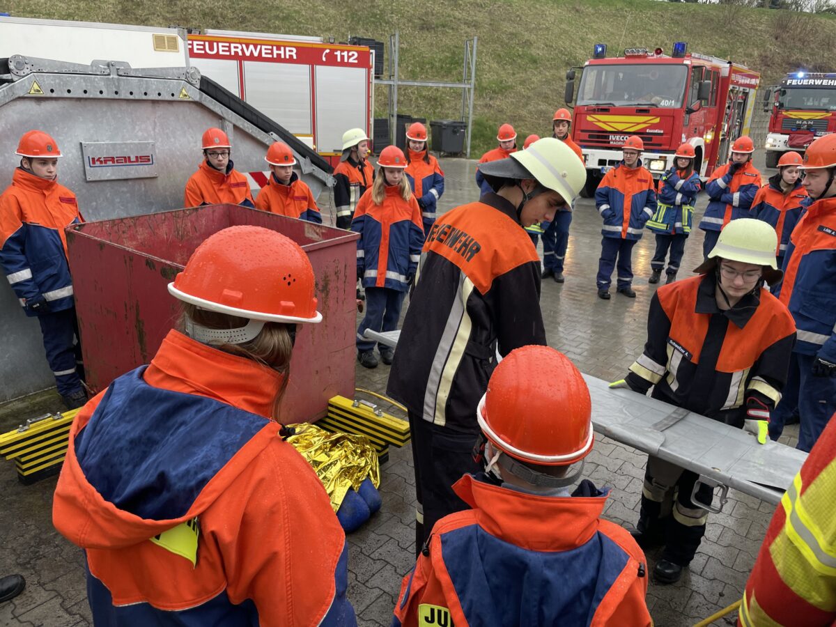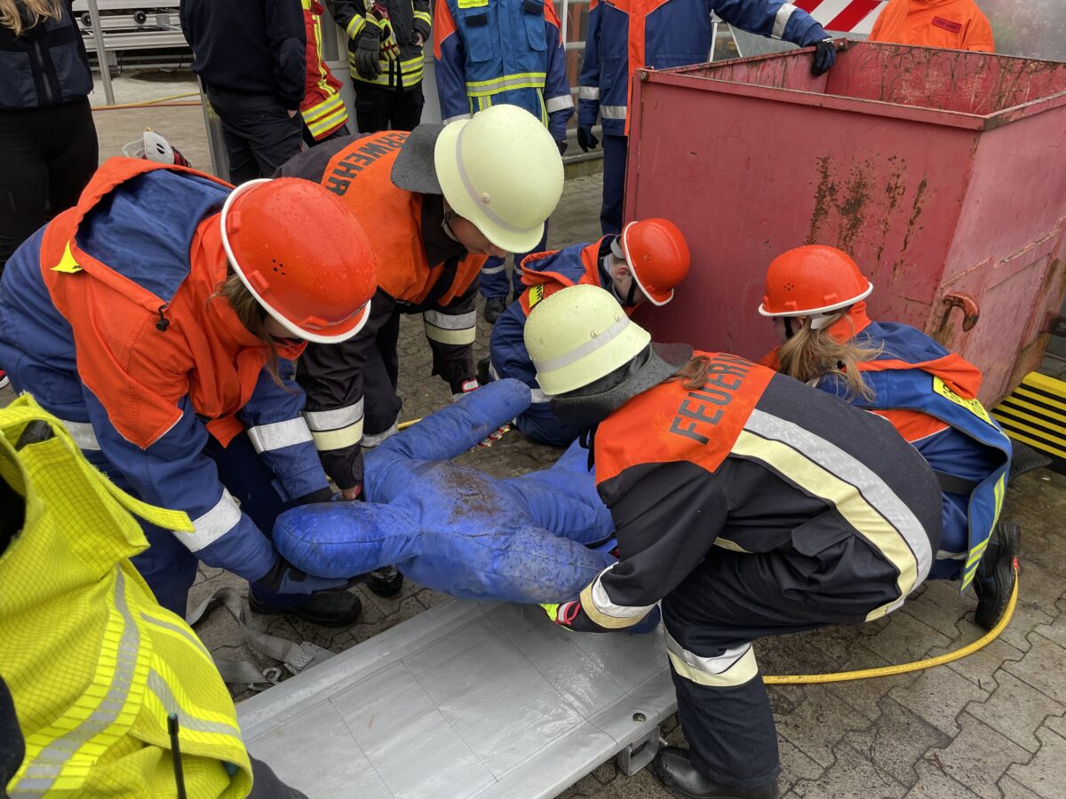 Außerdem mussten sie eine unter einem Container eingeklemmte Person auf dem Gelände der Gärtnerei Steinhilber in Neustadt/WN befreien. Bei diesem Einsatz lernten die Jugendlichen den Umgang mit Hebekissen, Unterbaumaterial, einer Trage und die Patientenbetreuung.