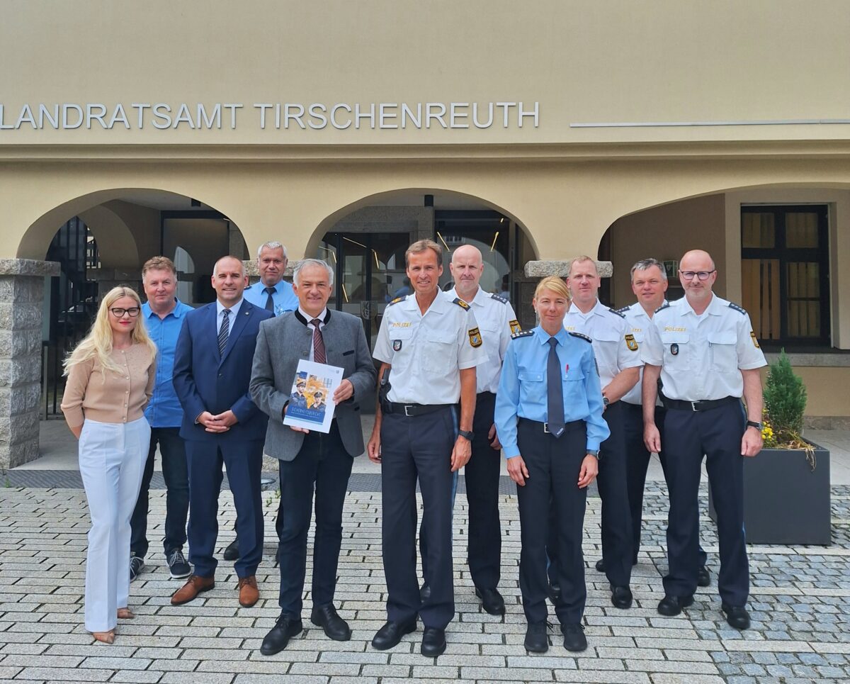 Im Landratsamt Tirschenreuth fand das jährliche Sicherheitsgespräch statt, bei dem Vertreter des Landratsamtes und der Polizei zusammenkamen, um die Kriminalitätszahlen des Vorjahres zu präsentieren und die Sicherheitslage im Landkreis zu besprechen.