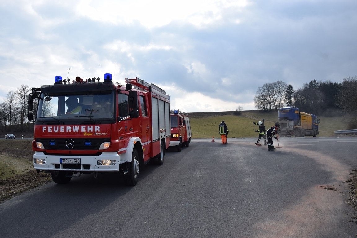 Den Einsatz geleitet und koordiniert haben Kommandant Ernst Braunreuther und Gruppenführer Georg Redl Junior samt 15 Einsatzkräften aus Kulmain. Sie hatten die Unfallstelle weiträumig abgesichert, den Brandschutz sichergestellt, die Unfallstelle gereinigt und den Verkehr umgeleitet.