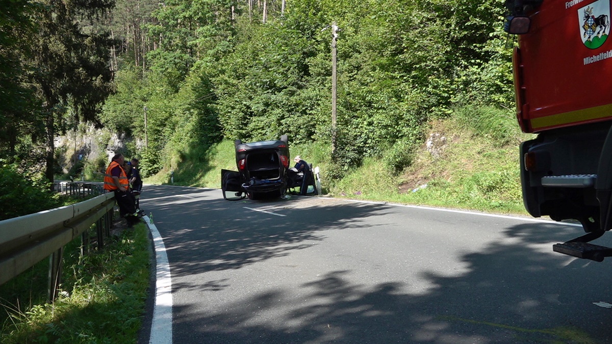 Am Dienstagnachmittag gegen 15.30 Uhr befuhr aus Fahrer eines Opel Mokka aus dem Landkreis Bayreuth die Staatsstraße 2162 von Michelfeld in Richtung Pegnitz. Kurz nach Weidelwang kam er in einer Linkskurve nach rechts von der Fahrbahn ab und fuhr eine Felsenböschung hinauf.