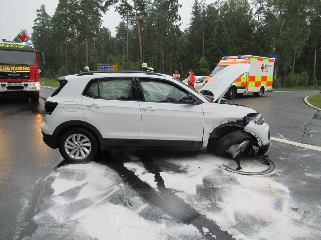 Am Donnerstagmorgen gegen 07:15 Uhr befuhr eine Frau (33) aus Eschenbach mit ihrem VW die B470 und wollte an der Einfahrt bei Parkstein nach links in Richtung Hütten abbiegen. Dabei übersah sie einen US-Amerikaner (40) mit seinem BMW, der auf der NEW2 aus Richtung Parkstein kam. Im Kreuzungsbereich kam es zum Zusammenstoß der beiden Fahrzeuge.