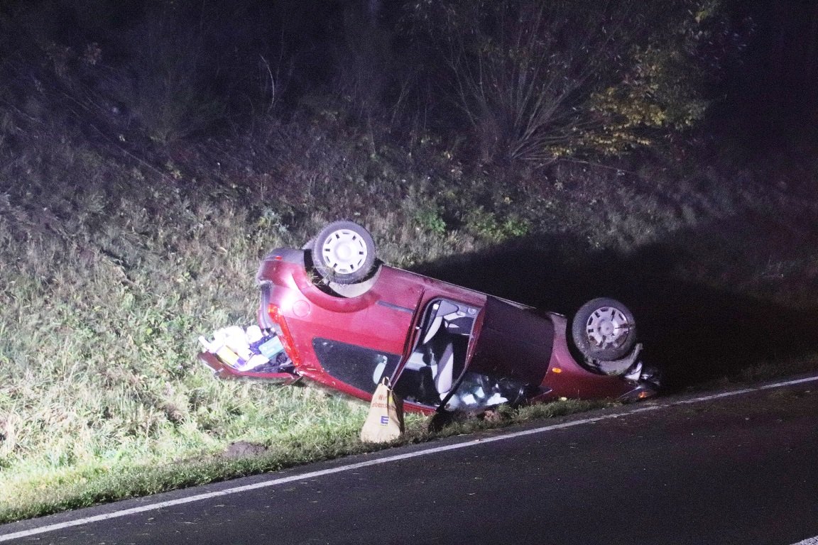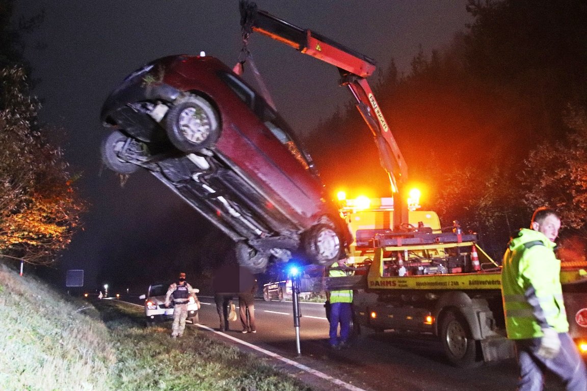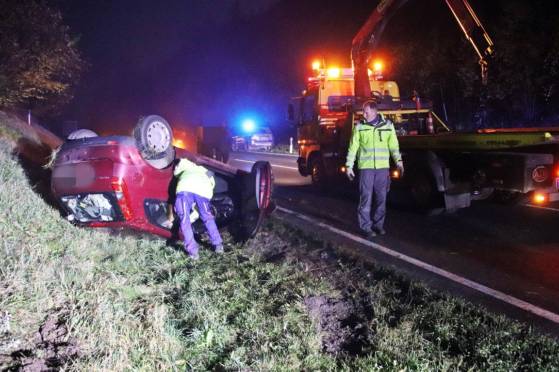 Er übersteuerte daraufhin sein Fahrzeug stark nach links, so dass er die Kontrolle verlor und in den linken Straßengraben fuhr. Hier überschlug sich sein Auto, das schließlich auf dem Dach zum Liegen kam.