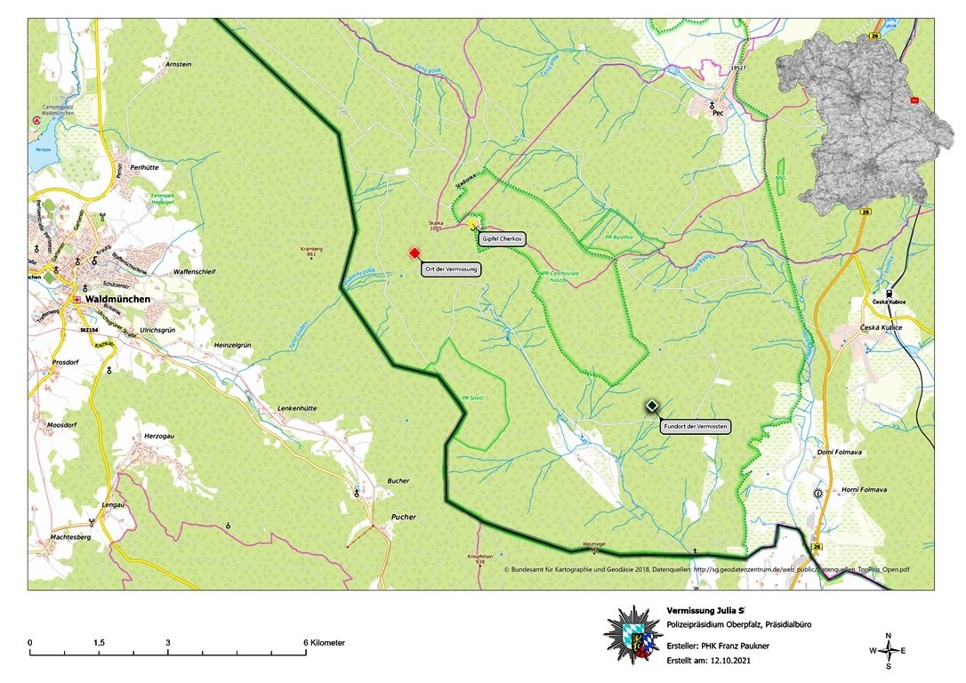 “Am frühen Dienstagnachmittag kam schließlich die erlösende Meldung von Seiten der tschechischen Behörden, dass das Mädchen lebend auf tschechischem Hoheitsgebiet, etwa 3,5 Kilometer (Luftlinie) entfernt vom Gipfel des Cerchov aufgefunden wurde”, berichtet Sprecher Josef Weindl.