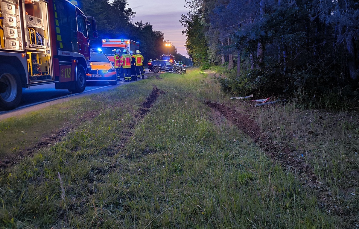 Auf der Bundesstraße 470 zwischen Dießfurt und Pressath, kurz nach Troschelhammer, war der Fahrer eines BMW X4 in Richtung Pressath unterwegs. Auf der geraden Strecke kam er zunächst auf die Gegenfahrbahn, steuerte dagegen und fuhr anschließend in den rechten Straßengraben. Dort überfuhr er mehrere Verkehrszeichen und kam nach einigen Metern quer zur Fahrbahn zum Stehen.