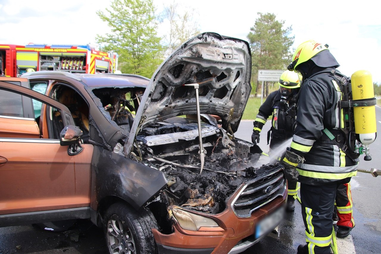 Am Samstagnachmittag gegen 13:30 Uhr wurden die Feuerwehren aus Hütten und Kaltenbrunn auf die NEW21 am Industriegebiet Hütten alarmiert. Dort soll laut ersten Informationen ein Fahrzeug brennen. Beim Eintreffen der ersten Kräfte stellte sich heraus, dass ein Ford bereits in Vollbrand stand. Unter Atemschutz versuchten die Feuerwehrler, den Wagen abzulöschen. Was ihnen nach einiger Zeit auch gelang.