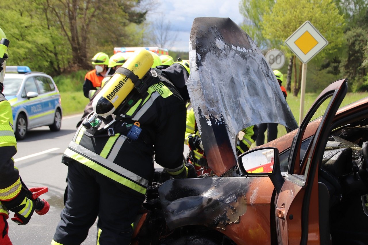 Die Polizeibeamten aus Eschenbach schätzten den Sachschaden auf etwa 25.000 Euro. Der Ford musste abgeschleppt werden. Zusätzlich zum Ablöschen des Fahrzeuges sperrten die Einsatzkräfte die NEW21 für den Verkehr vollständig ab und reinigten die Fahrbahn. Für die Kameraden der Freiwilligen Feuerwehr Hütten war es der erste Atemschutzeinsatz mit dem neuen Einsatzfahrzeug.