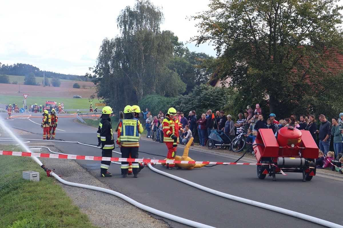 Ebenso gilt es sich besonders bei dem Markt Mantel und dem Bürgermeister Richard Kammer zu bedanken, der für die Übungsteilnehmer Getränke als auch eine Brotzeit mit Wurstsemmeln sponserte. Hierbei gilt es sich ebenfalls bei der Metzgerei Pöll zu bedanken, die in diesem Rahmen einen Kühlanhänger bereitstellten und am Sonntag 240 Wurstsemmeln geliefert haben.