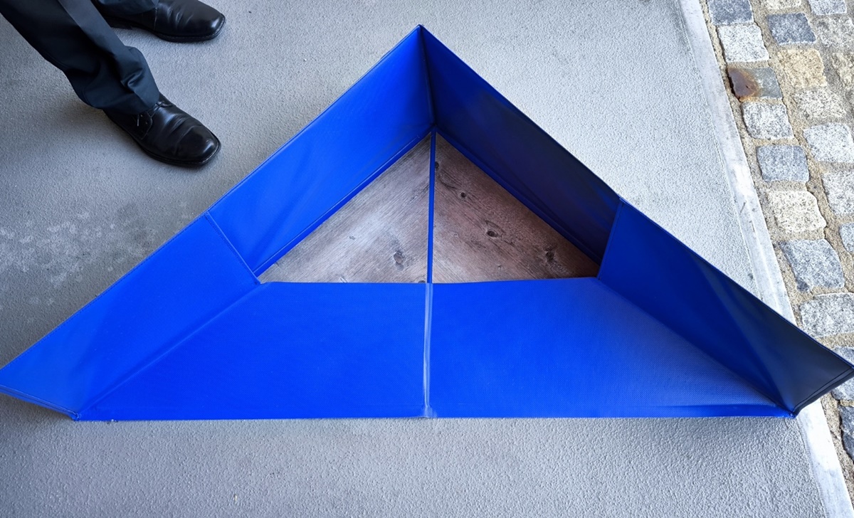 Der Wasserschlucker ist ein faltbarer Kasten aus stabiler Plane, der durch seine spezielle Konstruktion und den Einsatz von Wasserdruck eine selbst aufrichtende Vorderwand bildet. Diese innovative Technik ermöglicht es den Feuerwehrleuten, auch bei flächigen Überschwemmungen Wasser effizient abzusaugen, was in der Vergangenheit oft problematisch war. So kann der Schaden in betroffenen Gebäuden deutlich reduziert werden.