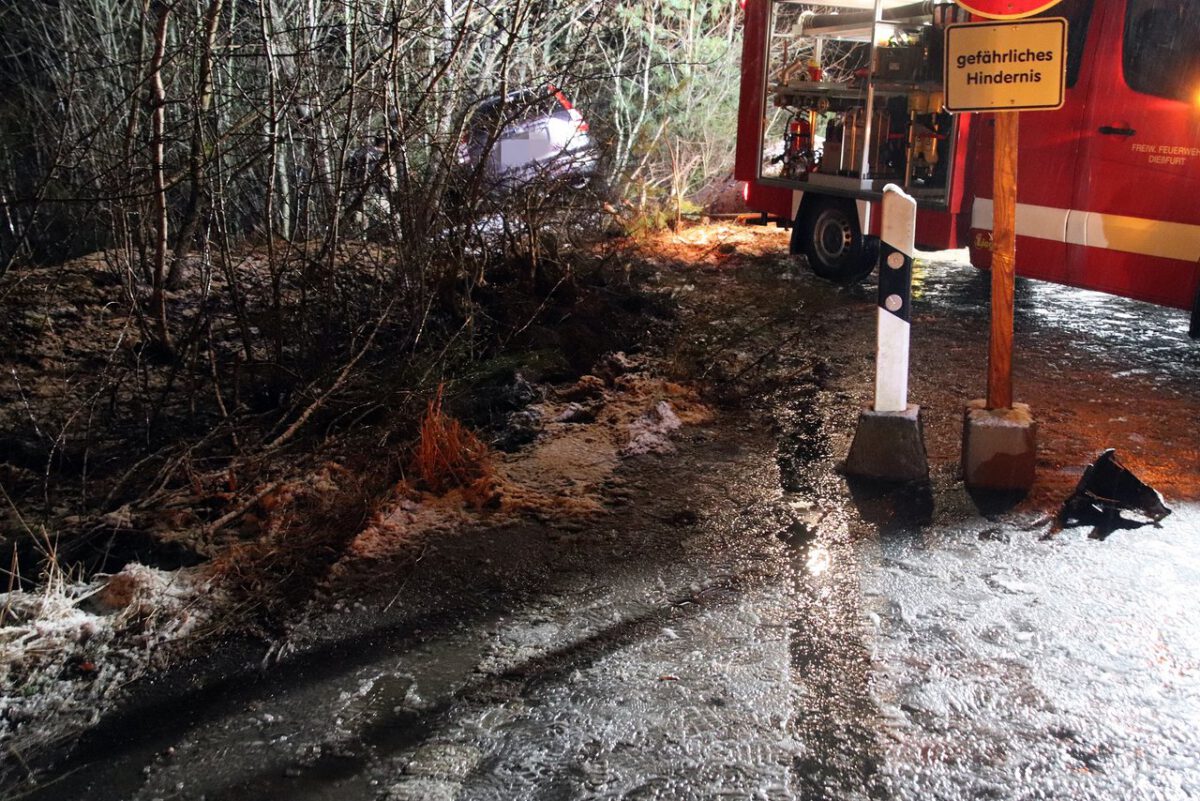 Der Fahrer konnte das Fahrzeug selbstständig verlassen und ist vom alarmierten Rettungsdienst untersucht worden. Er blieb augenscheinlich unverletzt. Die Feuerwehr aus Dießfurt sicherte mit einem Stahlseil das Fahrzeug ab. Der Wagen musste abgeschleppt werden. Den Sachschaden schätzen die Beamten der Polizei Eschenbach im unteren vierstelligen Bereich. Vor Ort war ebenfalls noch der HvO aus Pressath.