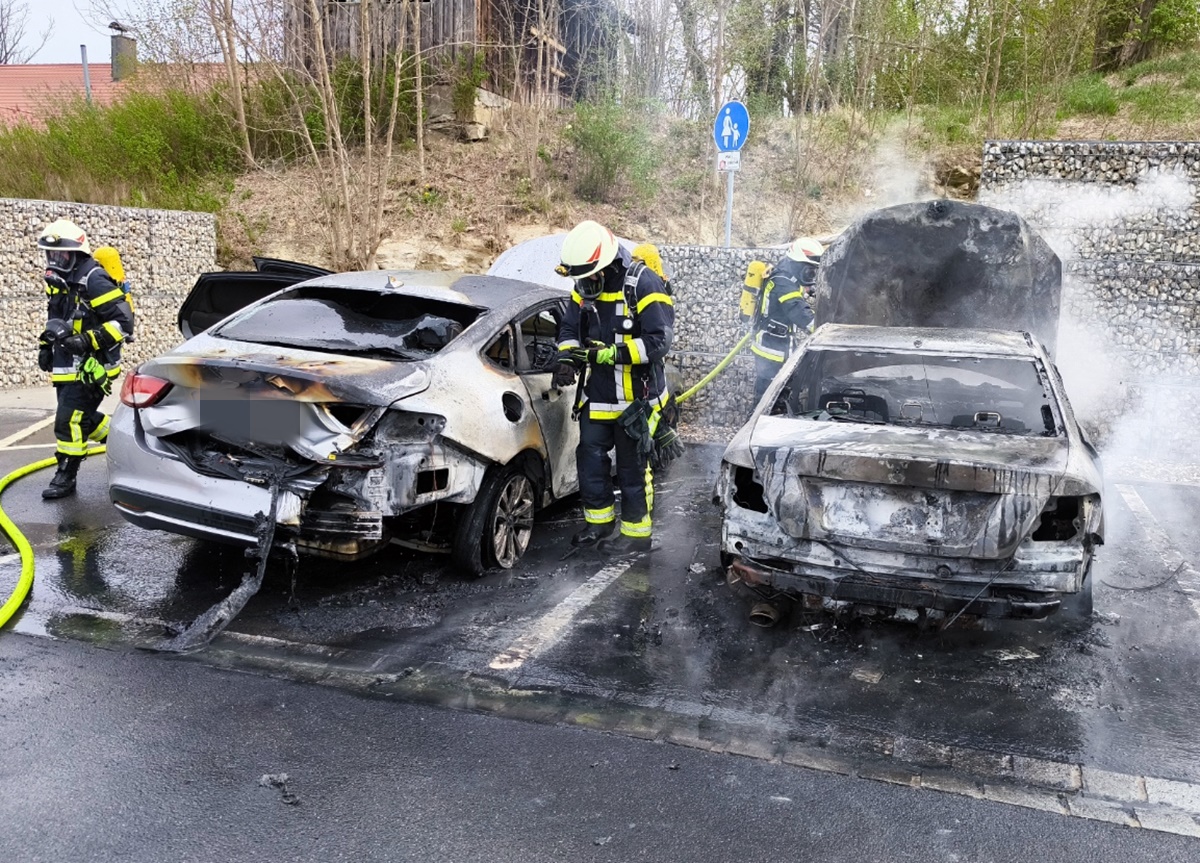 Ein daneben geparkter Chrysler wurde ebenfalls vom Feuer erfasst und brannte vollständig aus. Zwei weitere in unmittelbarer Nähe abgestellte Fahrzeuge blieben glücklicherweise unversehrt.